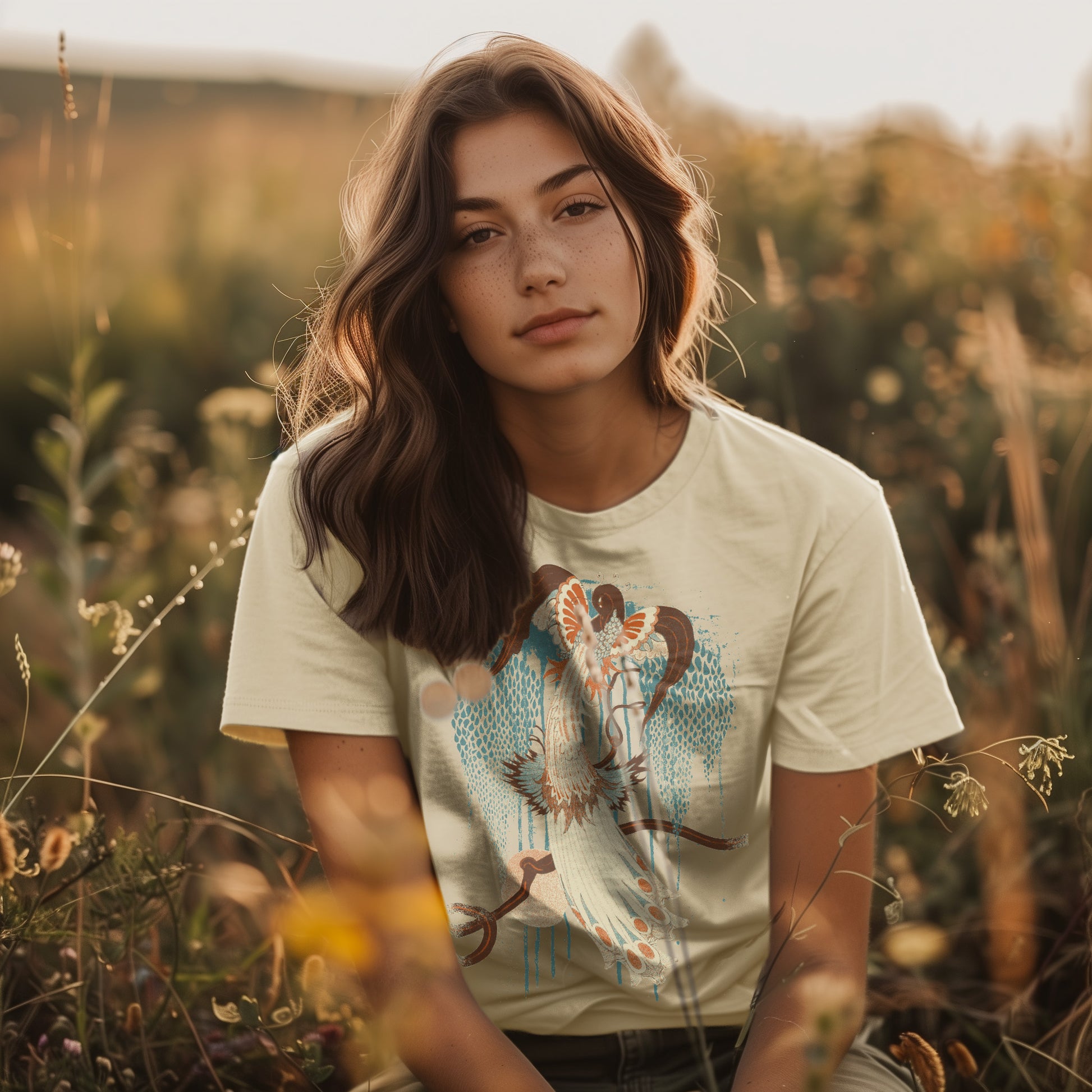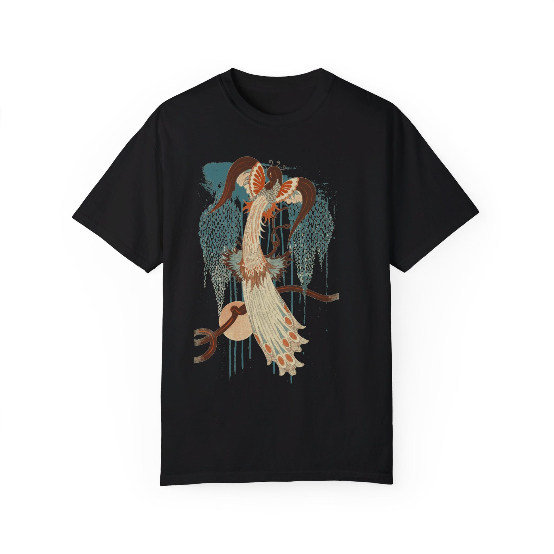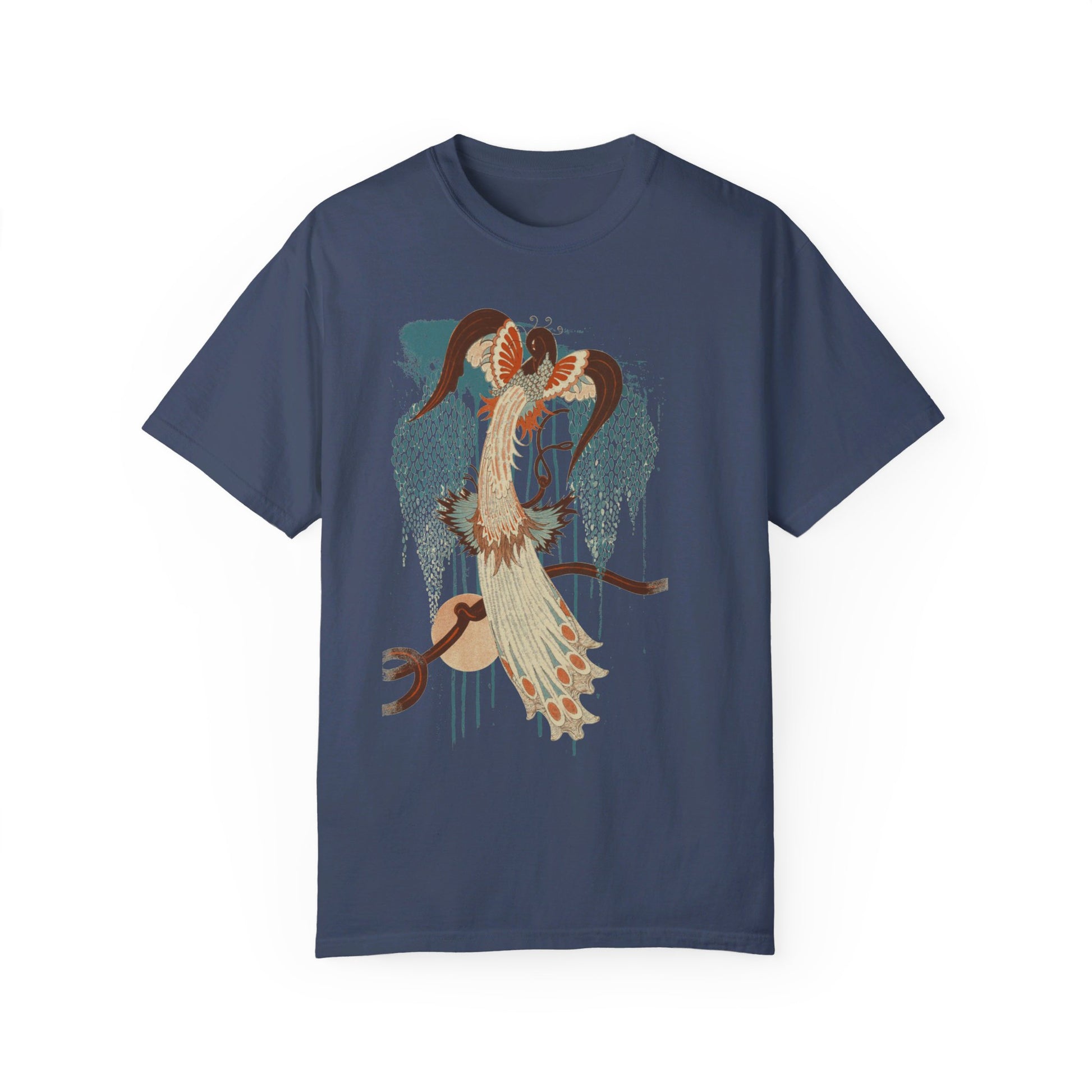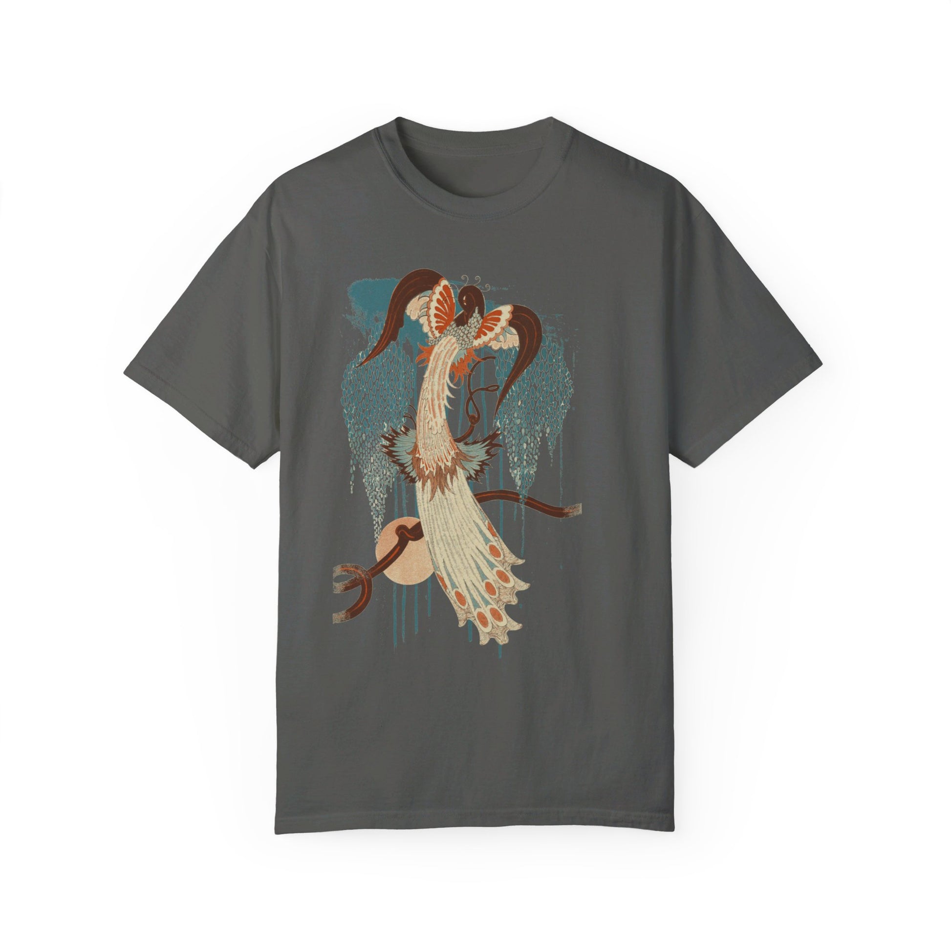 Bring vintage-inspired vibes to your next look with our Deco Peacock graphic tee by Idylle Clothing. Crafted from heavyweight, preshrunk cotton and garment-dyed for a lived-in feel, this tee offers a relaxed fit and lasting color saturation that's perfect for everyday wear. Featuring a bird graphic print and relaxed fit, it’s a perfect and versatile addition to your wardrobe. Pair it with high-wasted jeans or skirt. Available in sizes S to 2XL. This shirt is a unisex fit that runs true to size. If you want an oversized look, we recommend sizing up 2 sizes.