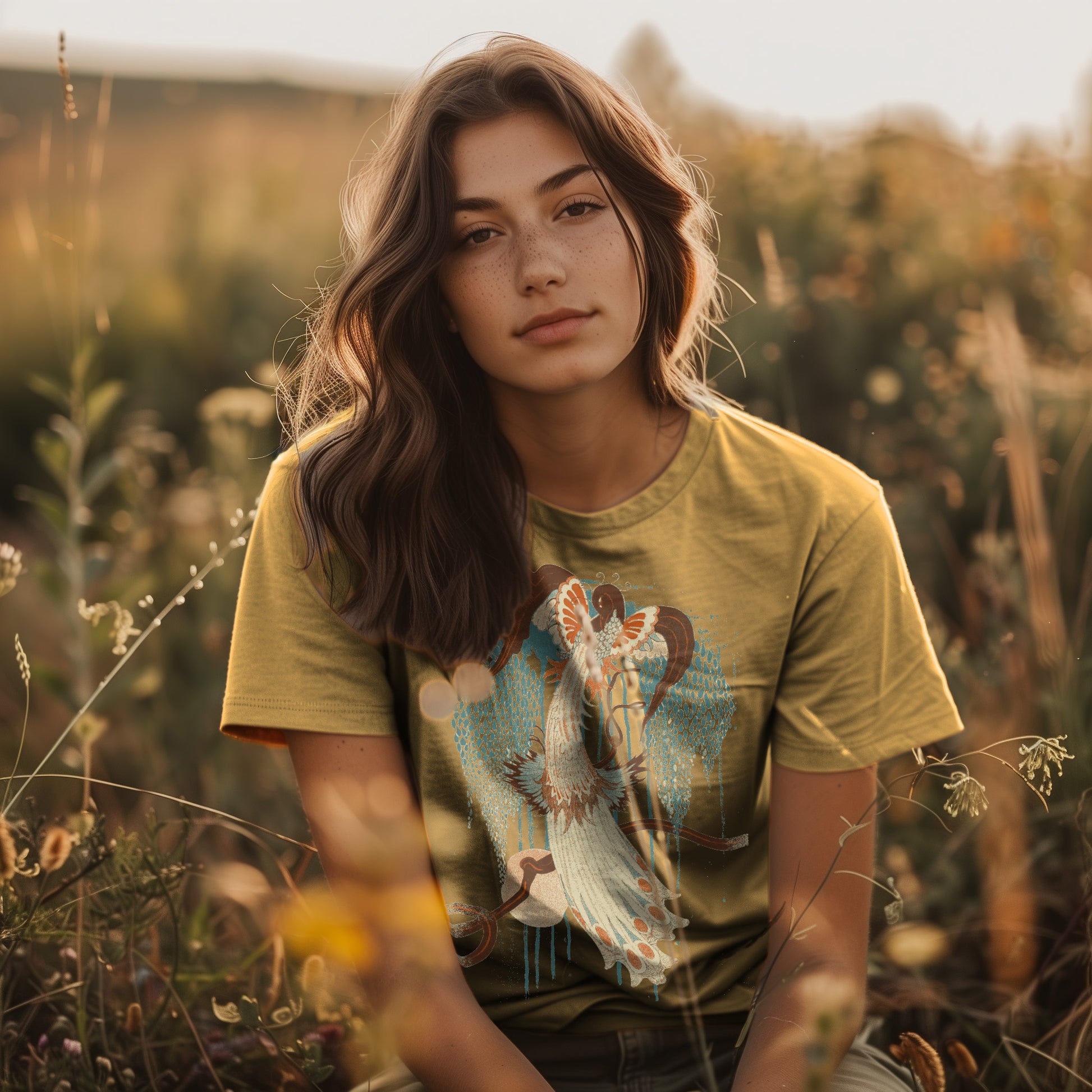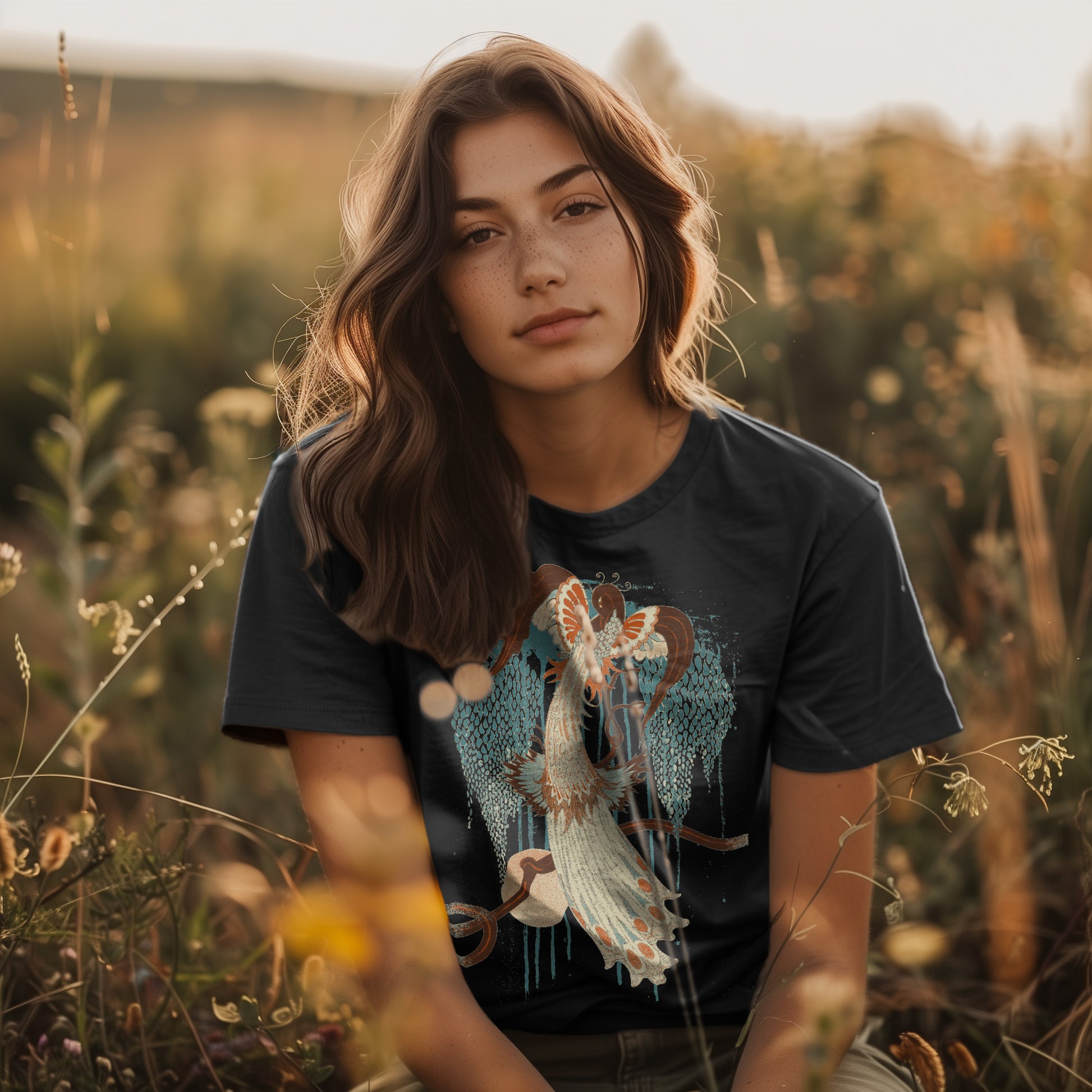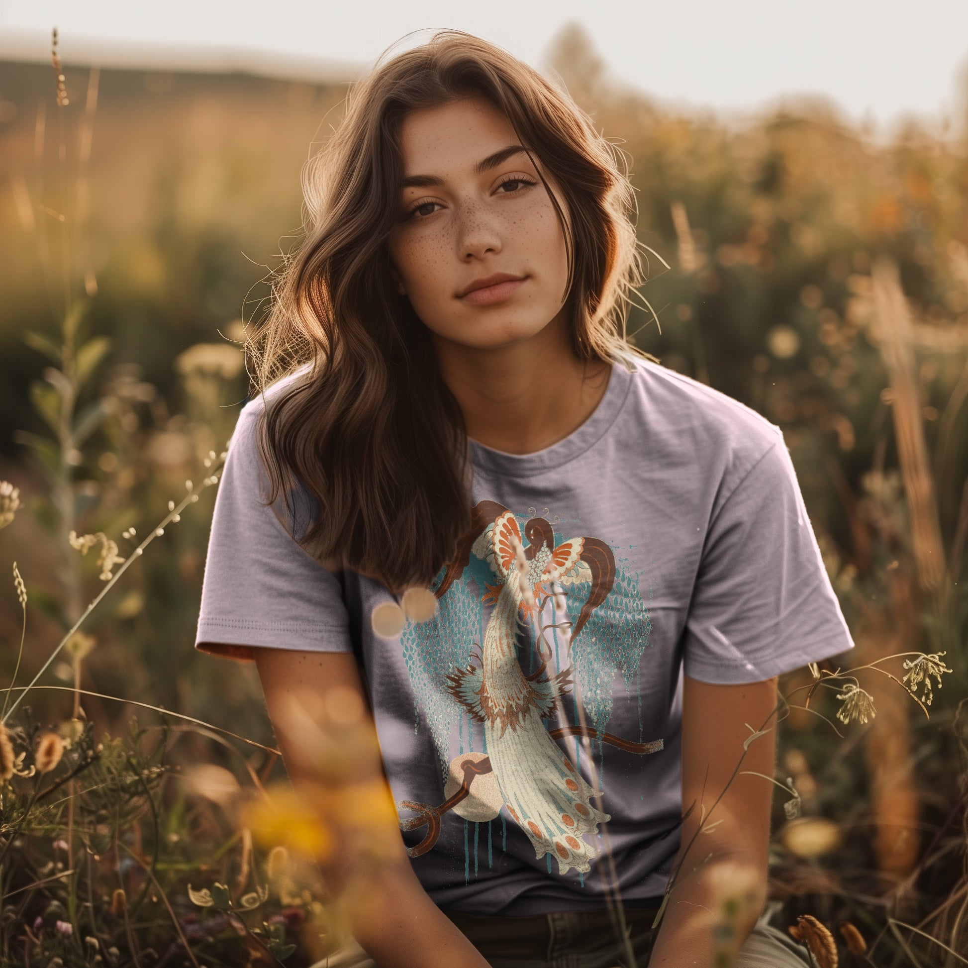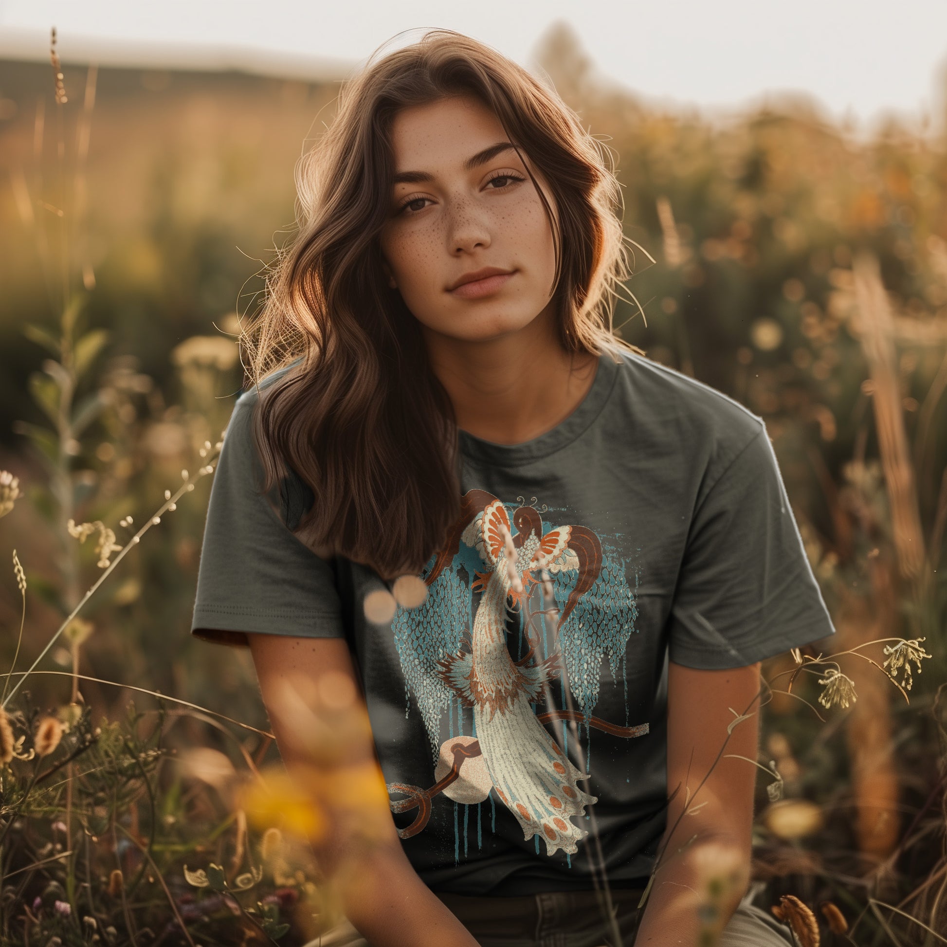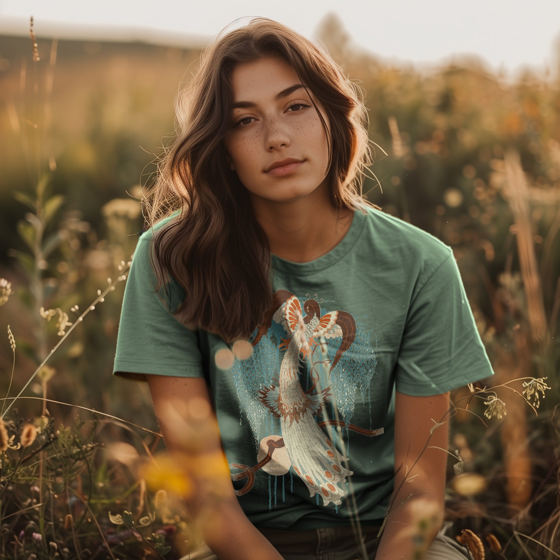 Bring vintage-inspired vibes to your next look with our Deco Peacock graphic tee by Idylle Clothing. Crafted from heavyweight, preshrunk cotton and garment-dyed for a lived-in feel, this tee offers a relaxed fit and lasting color saturation that's perfect for everyday wear. Featuring a bird graphic print and relaxed fit, it’s a perfect and versatile addition to your wardrobe. Pair it with high-wasted jeans or skirt. Available in sizes S to 2XL. This shirt is a unisex fit that runs true to size. If you want an oversized look, we recommend sizing up 2 sizes.