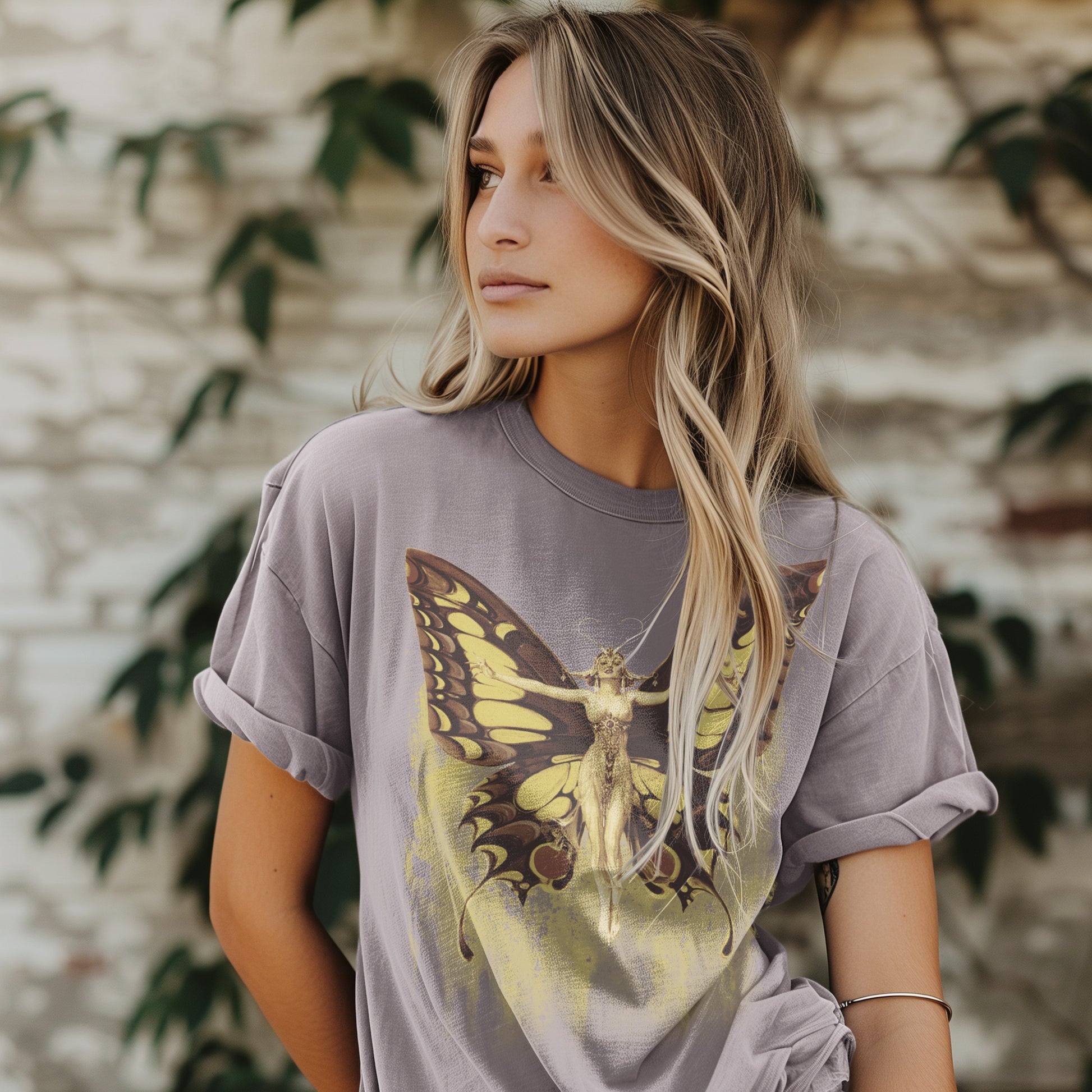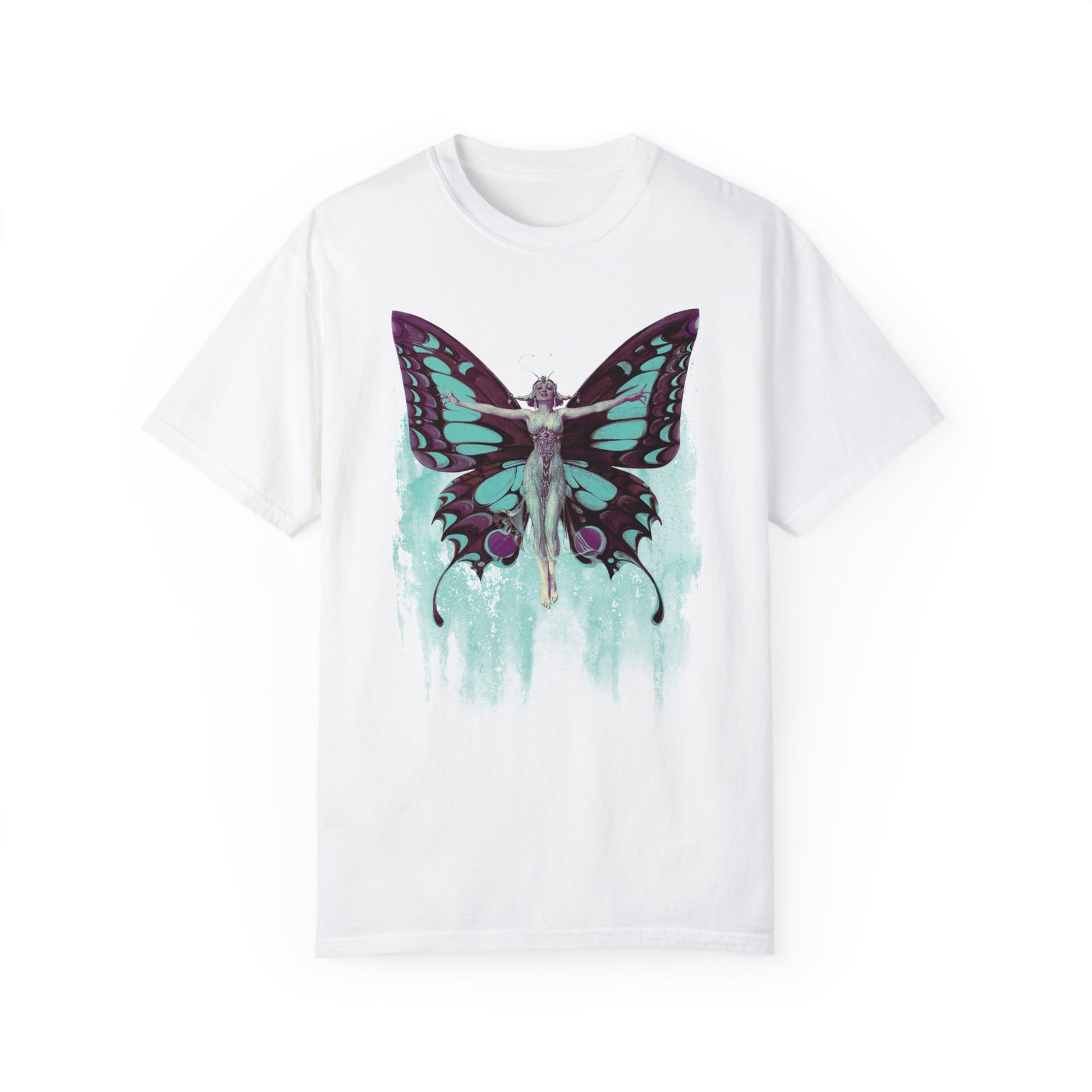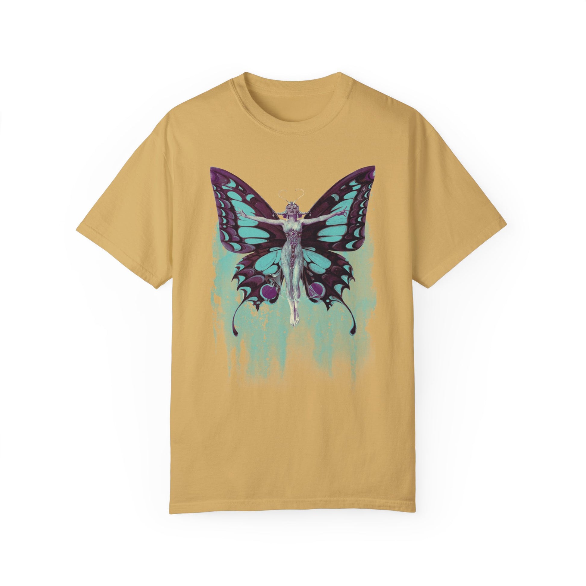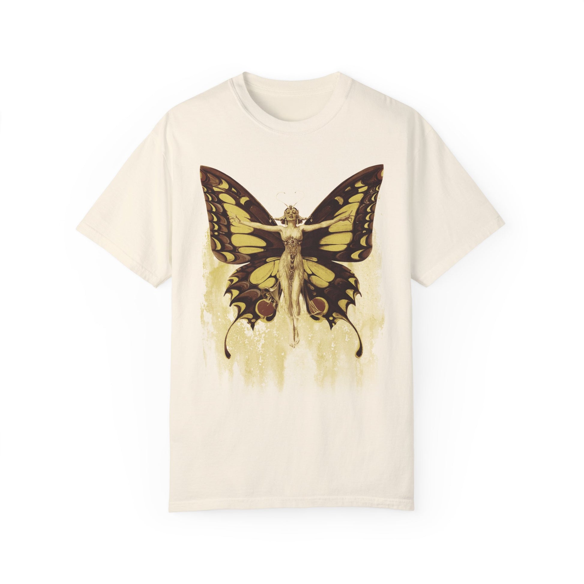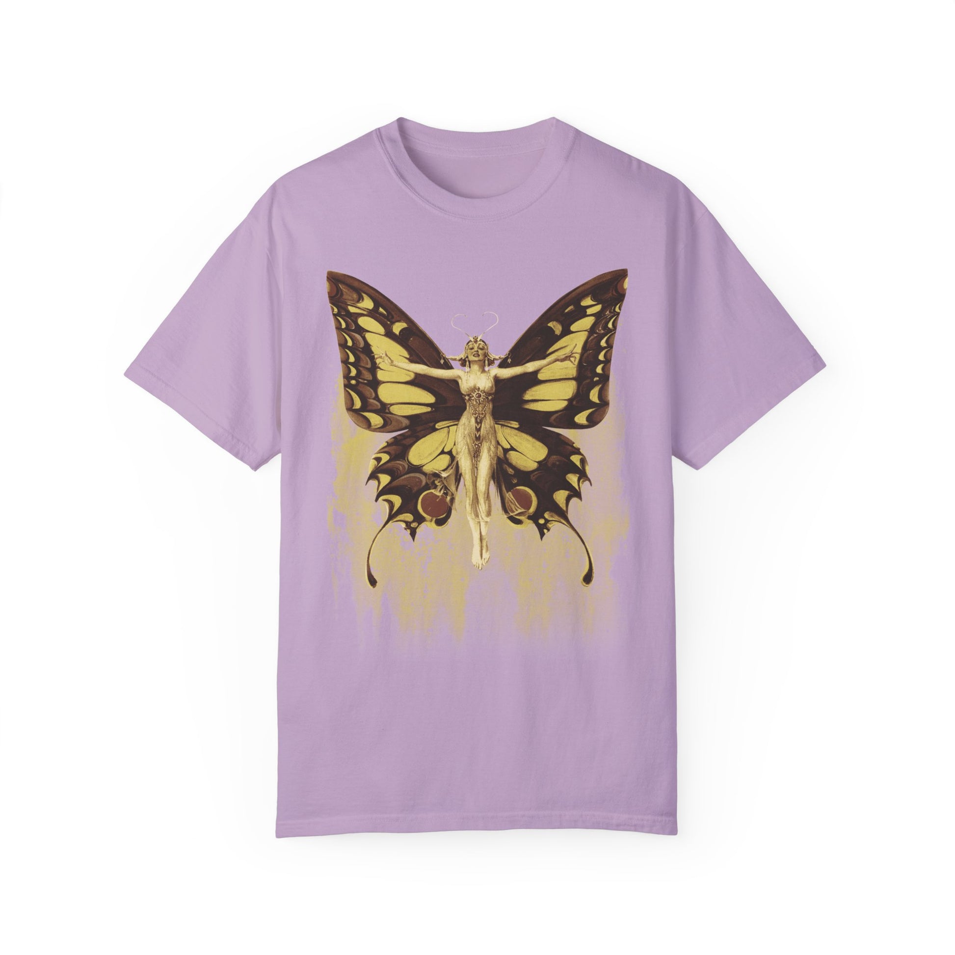 Embark on whimsical adventures with our Three's Company Graphic Tee by Idylle Clothing. Crafted from heavyweight, preshrunk cotton and garment-dyed for a lived-in feel, this tee offers a relaxed fit and lasting color saturation that's perfect for everyday wear. Featuring a butterfly graphic print and relaxed fit, it’s a perfect and versatile addition to your wardrobe. Pair it with leggings and sneakers. Available in sizes S to 2XL. This shirt is a unisex fit that runs true to size. If you want an oversized look, we recommend sizing up 2 sizes.