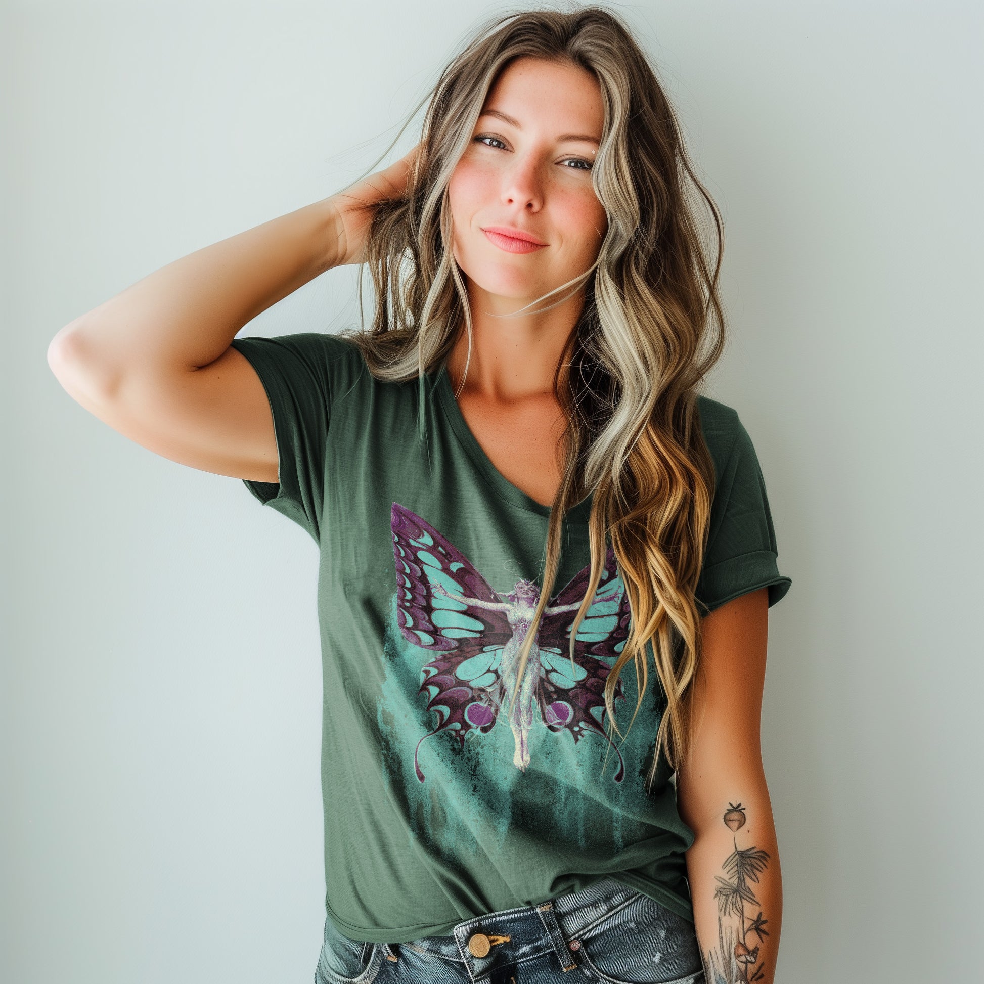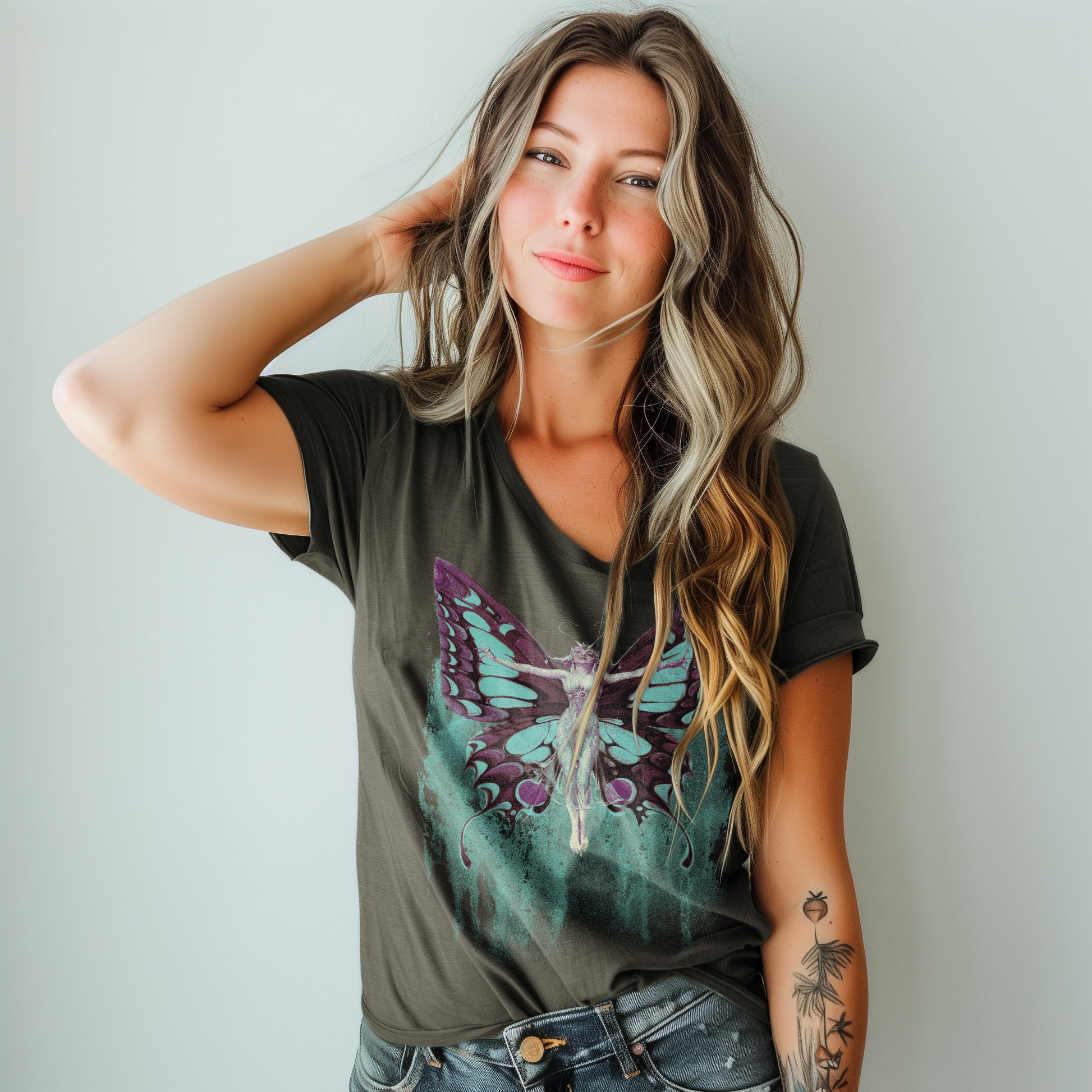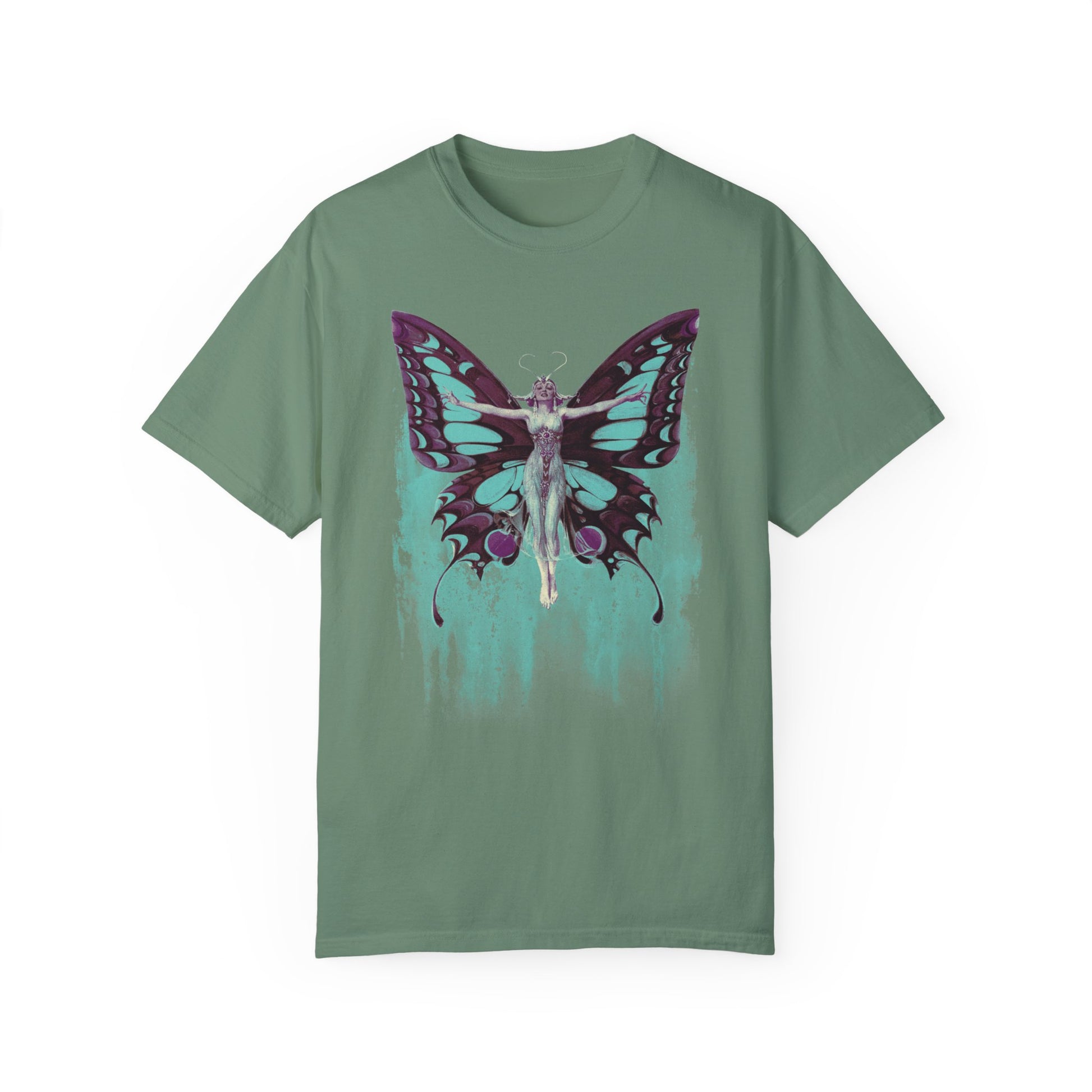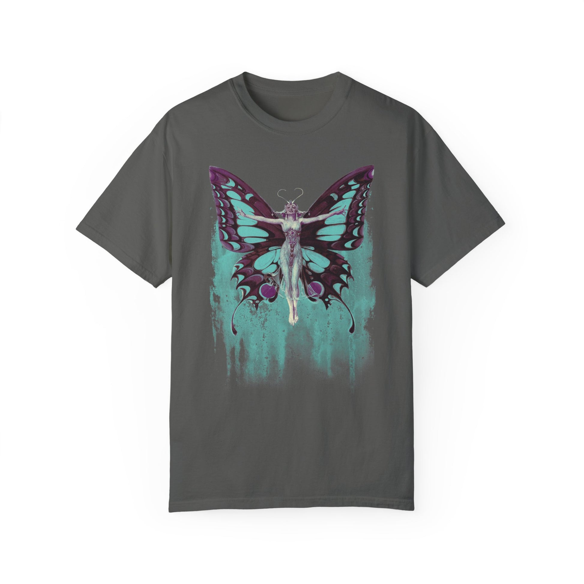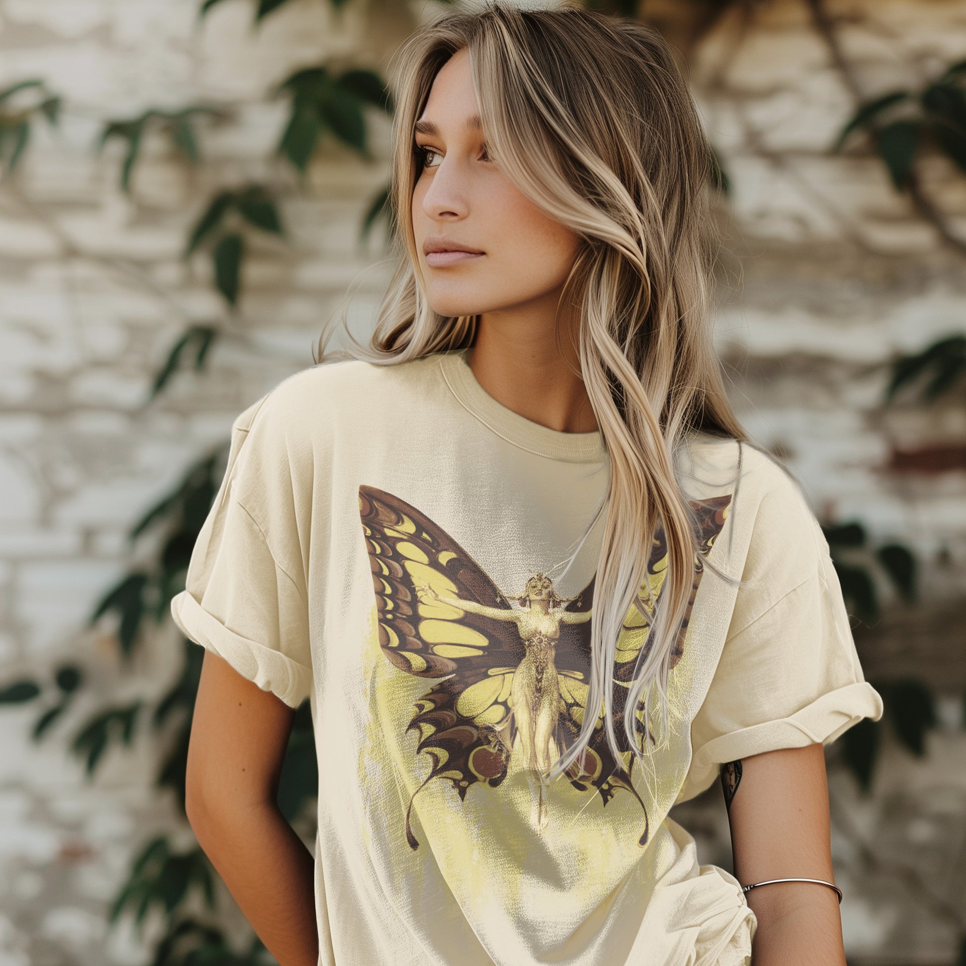 Embark on whimsical adventures with our Three's Company Graphic Tee by Idylle Clothing. Crafted from heavyweight, preshrunk cotton and garment-dyed for a lived-in feel, this tee offers a relaxed fit and lasting color saturation that's perfect for everyday wear. Featuring a butterfly graphic print and relaxed fit, it’s a perfect and versatile addition to your wardrobe. Pair it with leggings and sneakers. Available in sizes S to 2XL. This shirt is a unisex fit that runs true to size. If you want an oversized look, we recommend sizing up 2 sizes.